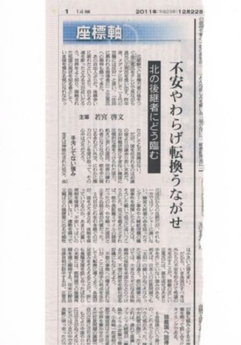 朝日の一面見て、卒倒しそうになった。ジョンイルくんが死んで、なんと金正男礼賛??!! 「自由人」? 「世界をよく知り」? 正男が? 国を預かる気になれないのは、単に遊んでたいからだけでしょ。さらにジョンイルが「拉致問題でも『主犯』の疑いがぬぐ…